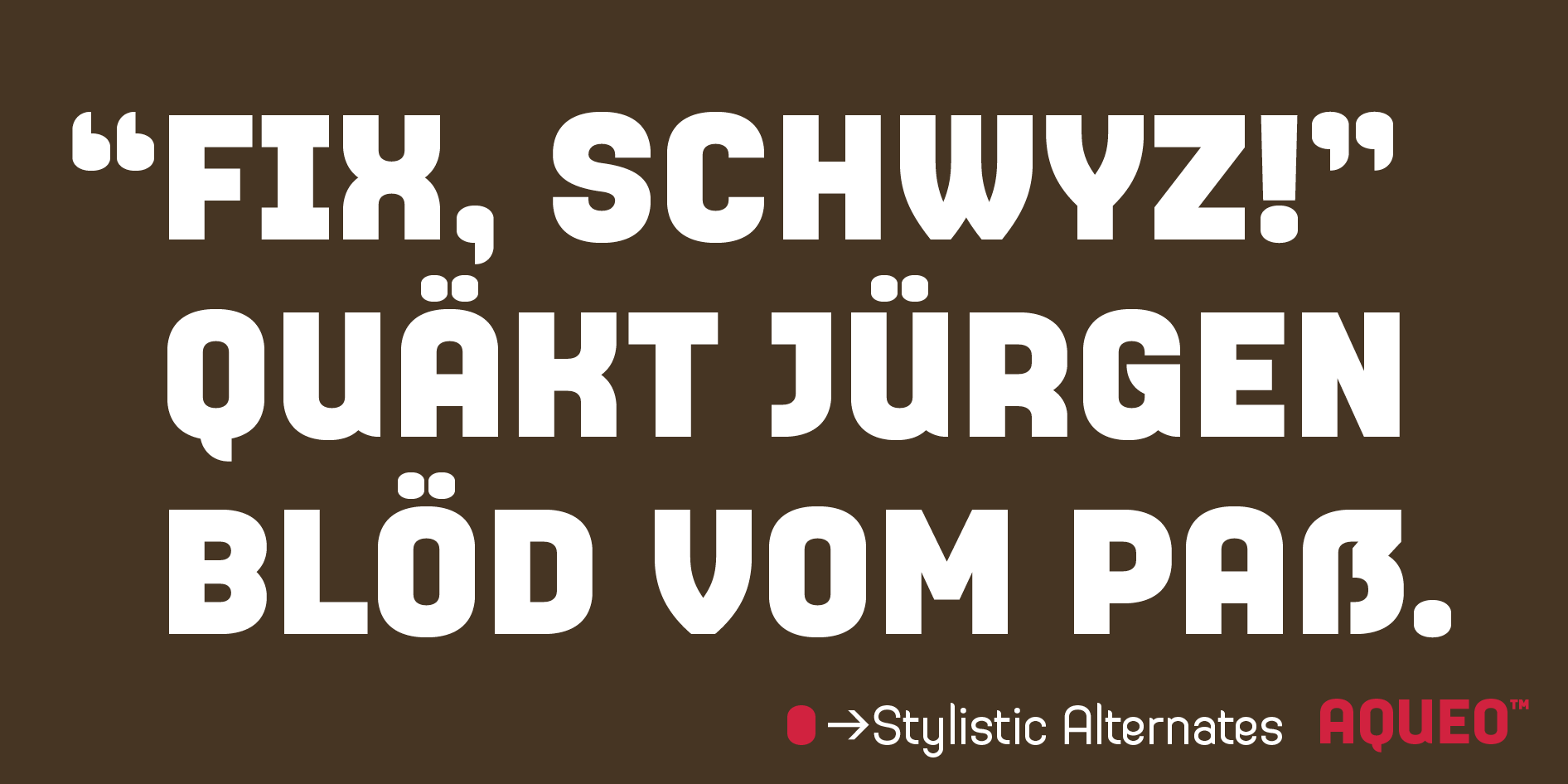 Aqueo™ Cylindrical Display Sans Serif Glyphs & Pangrams