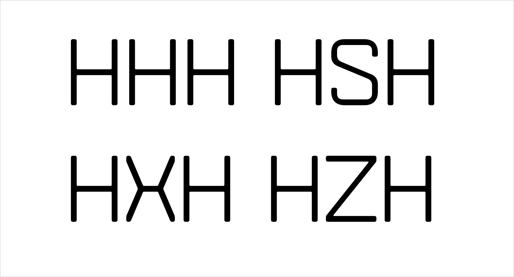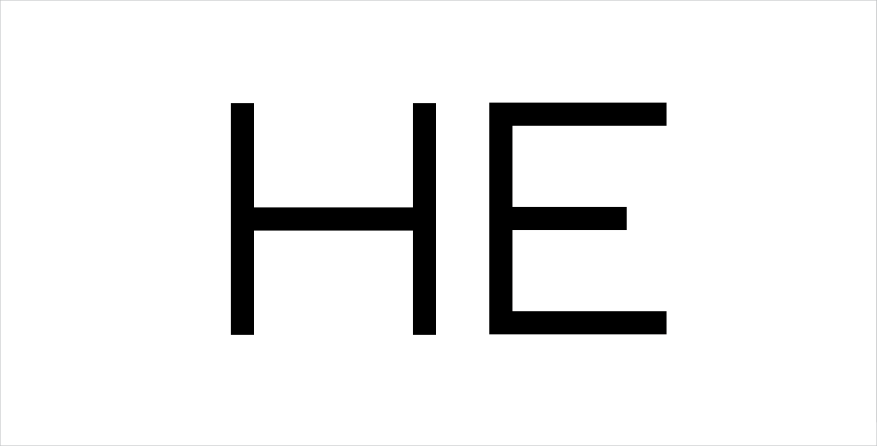 Figure 1 illustrates that the LSB and RSB of the H, and the LSB of the E are set at the same width. However, the RSB of the E is set at a narrower width because the horizontal middle line of the E is shorter, which creates a larger negative space on the right side of the E. Therefore, we compensate for that larger negative space by setting the RSB of the E a bit narrower than the H.