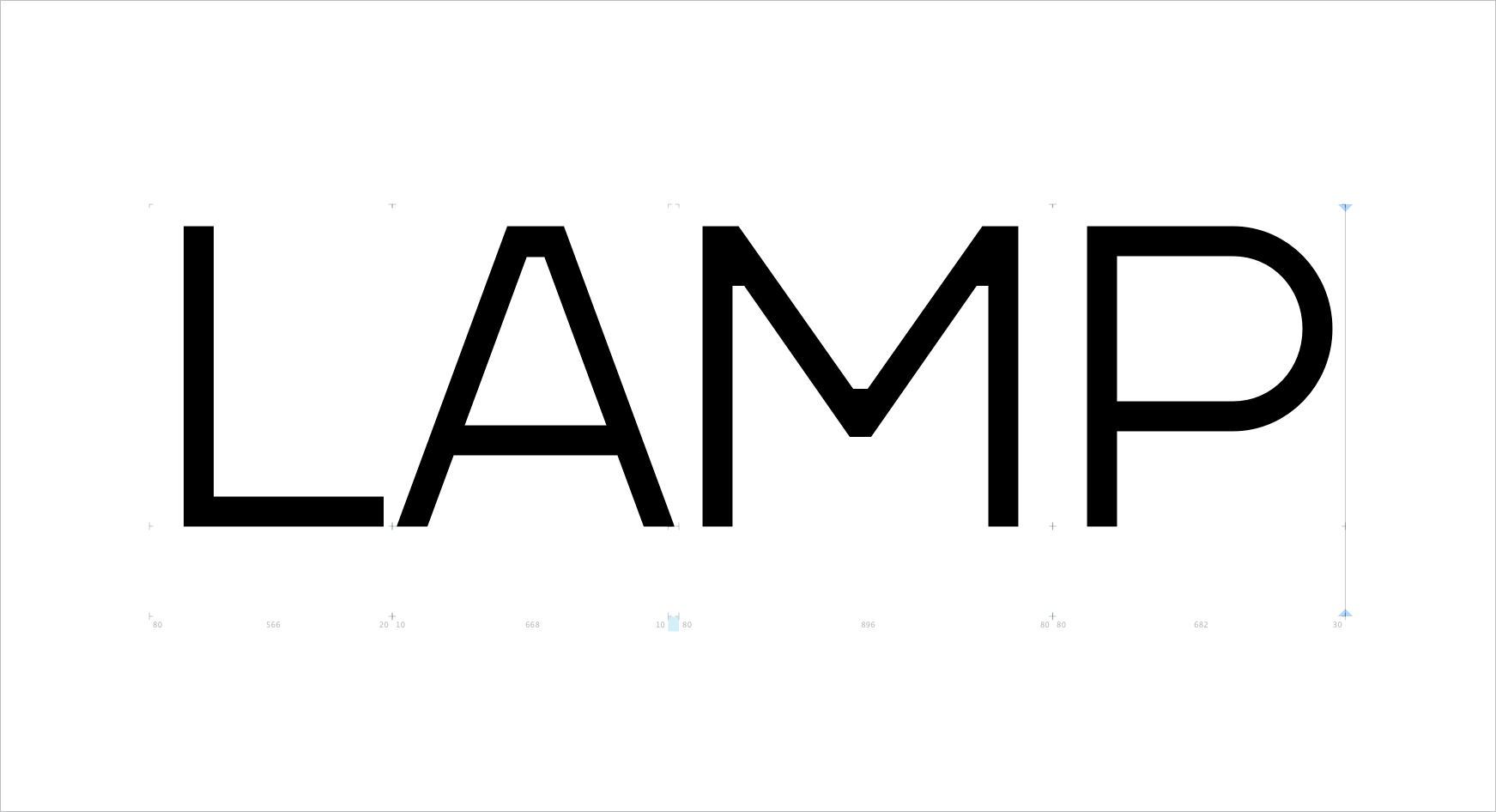 From time to time, you will come across substantial negative space in a pair such as LA (as shown in Figure 8). A simple kern will not be enough to solve the letterspacing issue, as it would cause the characters to crash or look unnatural. Instead, you can design a discretionary ligature for such a pair, which is essentially a custom glyph combining the two letters into a single character. This is an advanced technique for designers to ensure perfect spacing.