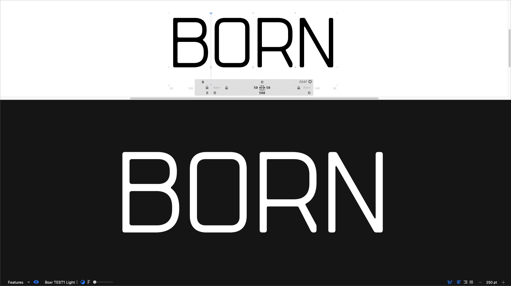 However, it was not until I started working on my first typeface that I realized the complexity of kerning a font. As a type designer, you not only have to deal with the front end of kerning the way a graphic designer or an art director does, but you also need to make sure the back end of it is well-organized. From my perspective, there are four major steps to kerning a typeface:
